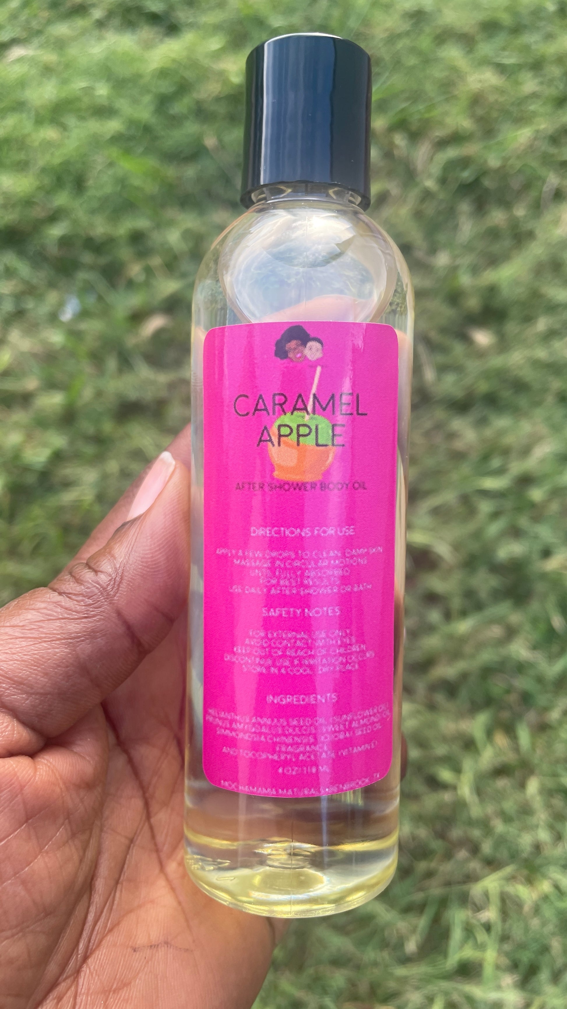 Our luxury body oil is deliciously scented. Our mix of oils will leave your skin moisturized and smelling amazing! Apply oil while skin is still damp AFTER your shower for a truly luxurious, skin nourishing experience. Do NOT apply during your shower, due to a slipping hazard!